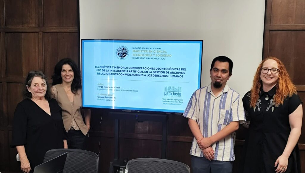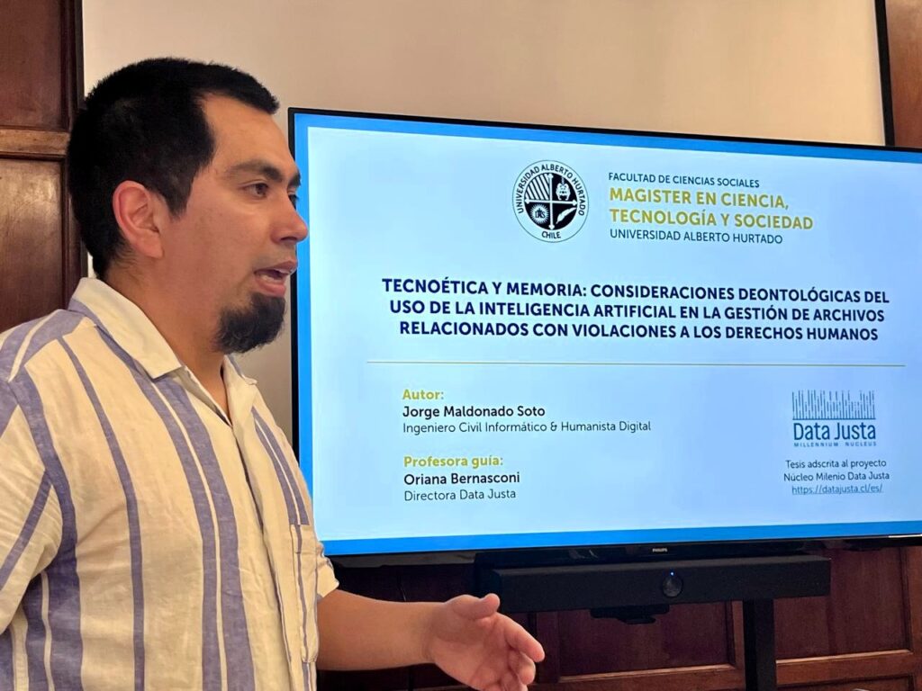 Desde Data Justa destacamos la exitosa defensa de la tesis de magíster de Jorge Maldonado Soto, ingeniero civil informático con especialización en humanidades digitales y tesista de postgrado del equipo, quien se convierte en el primer tesista del núcleo milenio en obtener su grado, constituyendo un hito relevante para el eje de formación del proyecto.